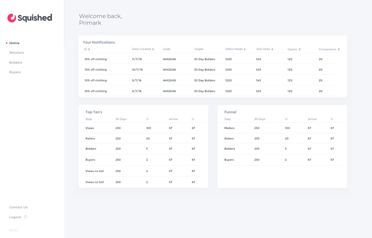 The power in the Squished platform is from the data created by users. We created a custom CMS that allowes for deep mining of the data, everything from bids on an individual item, through to total category views and everything in between!